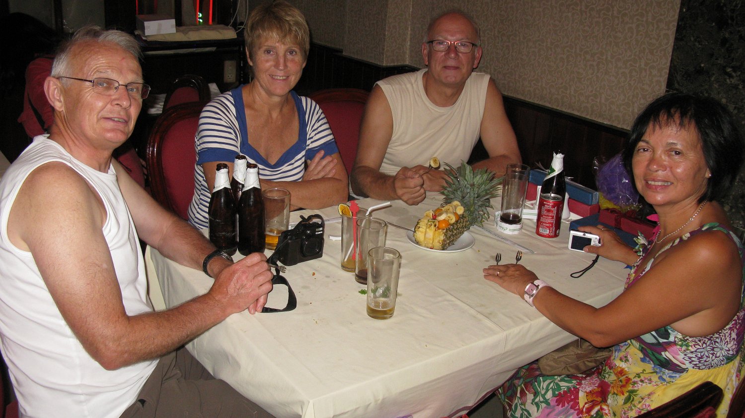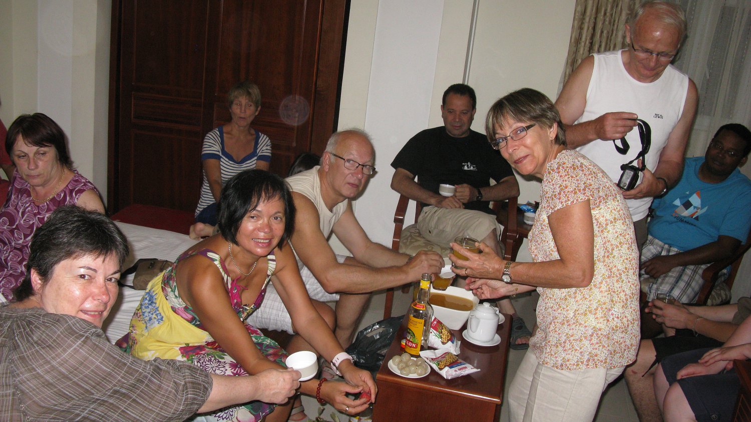 Vendredi 13 juillet: 8h30, départ en bateau pour la baie de Lan Ha puis baignade sur l'île aux singes. Retour vers 11h30. Déjeuner puis après-midi libre. 19h, apéro dans la chambre 1208. 19h30, dîner suivi d'un digestif dans la chambre 1205...