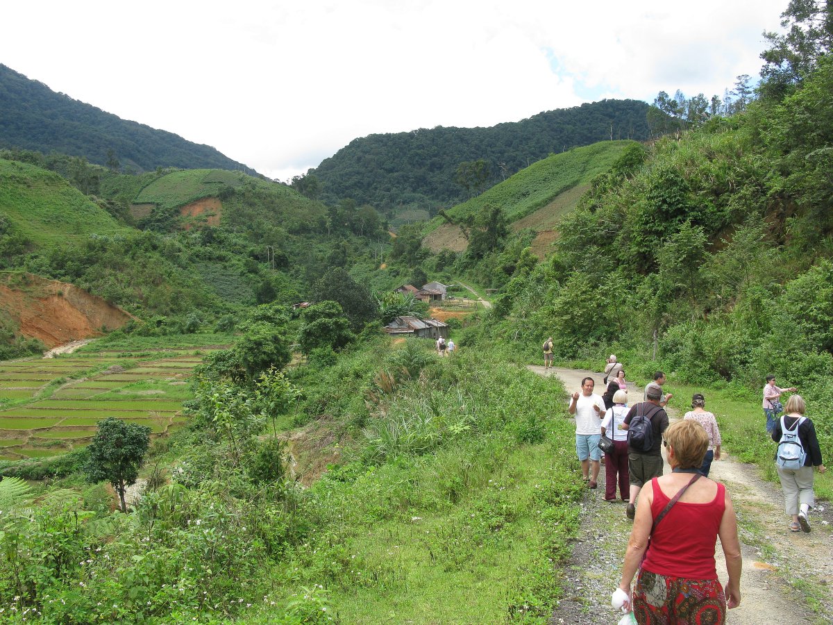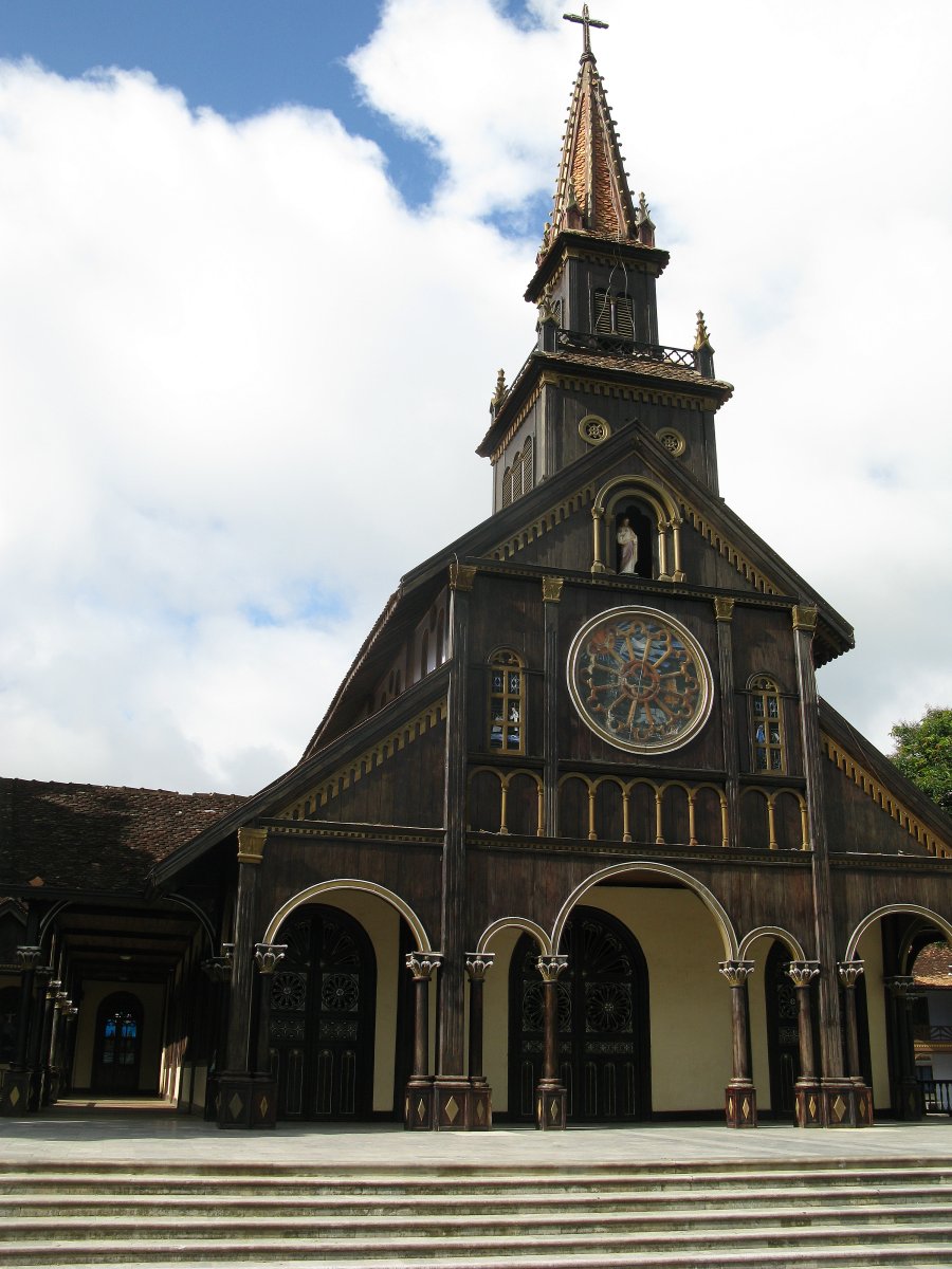 Mardi 3 juillet: Visite à Kontum de la cathédrale, d'une magnifique église en bois et d'un pont suspendu. Puis route vers Hoi An, ville du bord de mer ayant conservé son des bâtiments vieux de 2 siècles. En cours de route, la visite d'un village jarai ( abandonné à cause de la construction de la nouvelle route ) a été remplacé, lors d'un cheminement le long d'un sentier, par un contact difficile avec des sangsues locales...