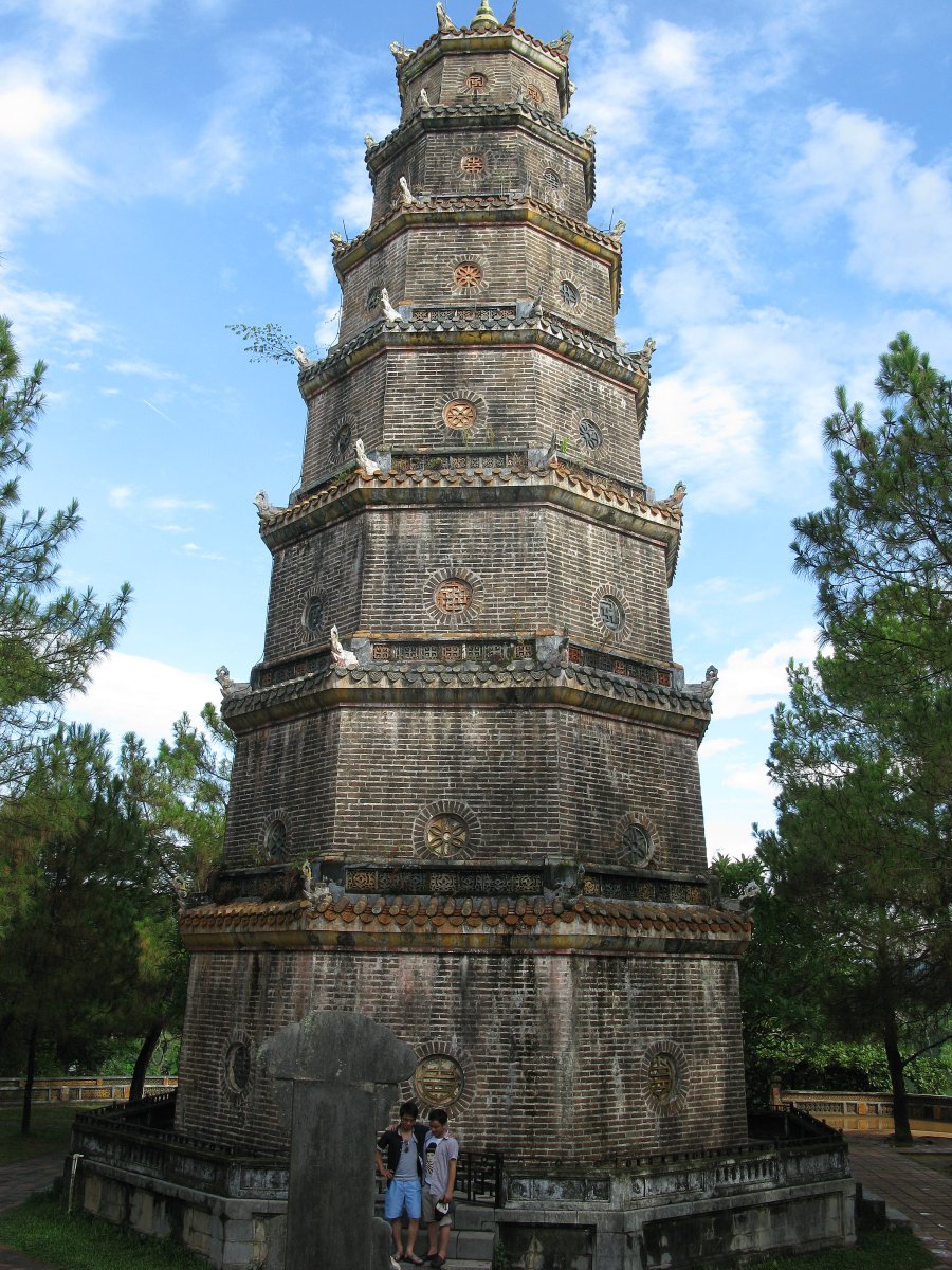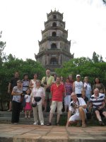 Vendredi 6 juillet: Départ de l'hôtel Thuy Duong 3 pour Danang. Halte dans les boutiques situées au pied de la montagne de marbre puis visite du musée Cham. Poursuite du voyage en bus vers Hué. Visite de la pagode de la dame céleste et du marché. Installation à l'hôtel Thien Thai. Dîner.